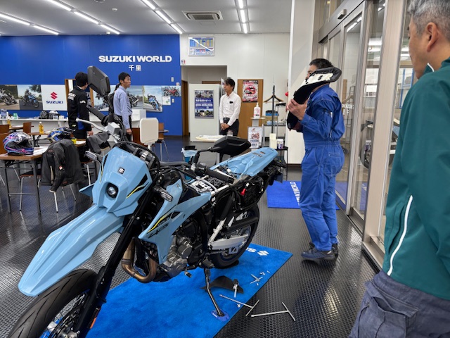 スズキ販売店向けの体験試乗会が、てんちょが20代の頃修行させていただいた懐かしくもアップデートされまくっているスズキワールド千里店様で行われました。実物!おおーデカい!ゼッケン的なフロントフェイスがかっこいい!