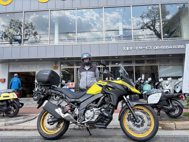 すごーい✨ついに念願のバイクキャンプデビュ~!定評あるスズキ800エンジンは軽さとスムーズな加速、安定した走行で、悪路も頼りになりますね。ネオレトロな外観にお荷物満載なのも、絵になってます。いってらっしゃ~い!