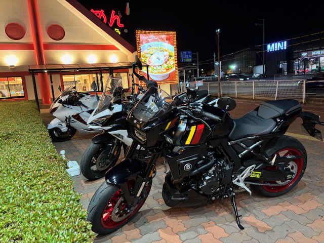 ↑↑↑そして日曜の夕方。ツーリングの報告に現れたところを、夜な夜な8TTの慣らしに連行されたお二人。今日は朝から走りました~とか、和歌山の温泉最高でした~と余韻にひたっておられるのに「奈良に資さんうどん食べに行きたいんやけど…」と閉店後のお付き合いを。乗れそうですわ、ありがとうございました。元は4気筒が好きな私ですが、色々と軽やかに楽しんでいこうと思います。