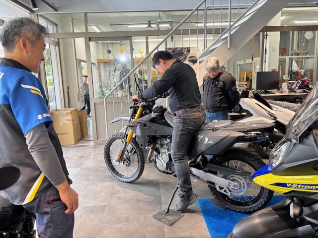 この日はあいにくの小雨模様でしたが、みんなわくわくでしたよ^^バイク屋さんはバイク好き。そして…そして…わくわくしつつびくびくしているのはスタッフえり。162cmの私にシート高890㎜は跨げるのか?!